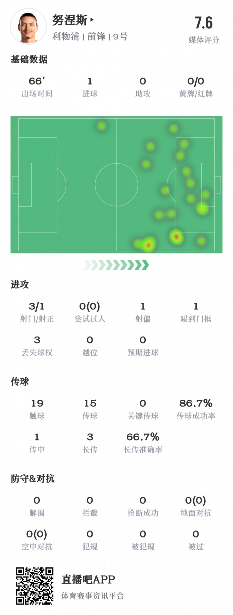 努涅斯数据:3射1进球1门框,19次触球3次失球权,获评7.6分 1月29日讯 足总杯第4轮,利物浦主场迎战诺维奇。努涅斯首发出战66分钟,为红军打入第2球,还有一次击中门柱,以下为努涅斯数据和评分。进球:1个射门:3次(射正1次、击... 2024-01-29 阅读全文